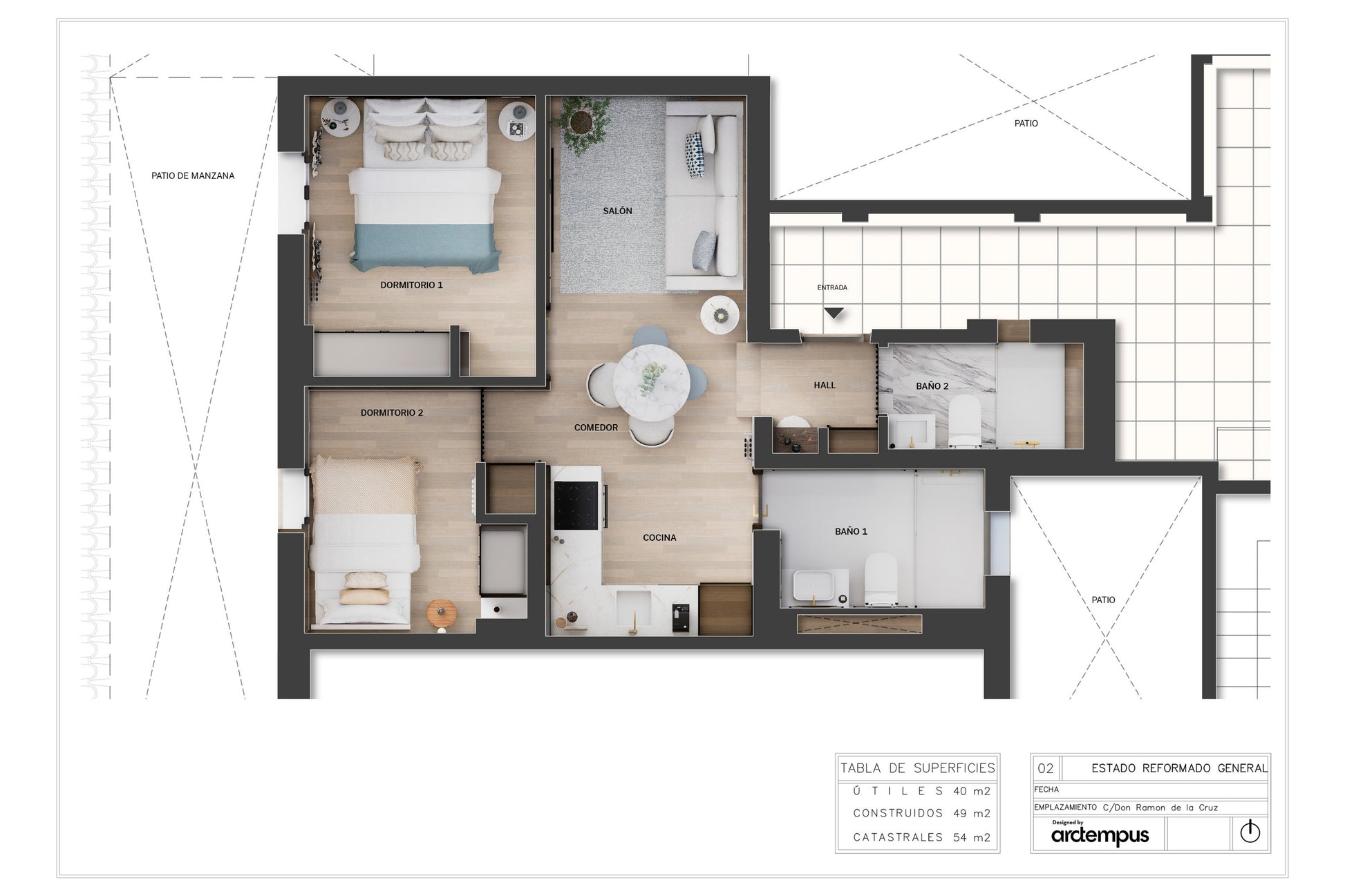 Cada vivienda ha sido concebida y transformada por Arctempus, uno de los estudios de arquitectura e interiorismo más prestigiosos de Madrid. Su sello se aprecia en cada detalle: distribuciones inteligentes, materiales nobles e iluminación estudiada que combinan elegancia clásica y modernidad.
